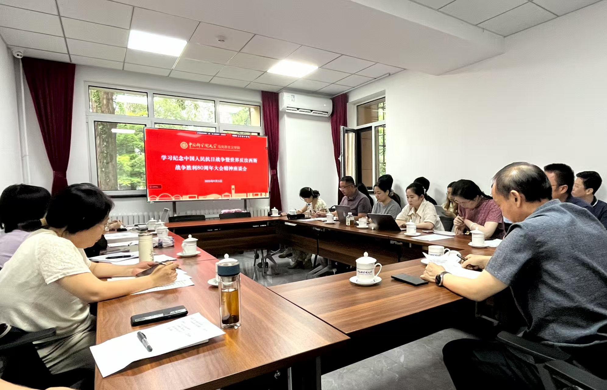 2025年9月5日下午,中国科学院大学马克思主义学院召开学习纪念中国人民抗日战争暨世界反法西斯战争胜利80周年大会精神专题座谈会。李和风院长出席并主持会议,校党委常委、组织部部长兼马克思主义学院党总支书记谭红军,马克思主义学院副院长常征、党总支副书记贾宝余出席了会议,学院师生代表参加会议。