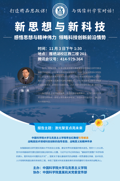 近日,中国科学院大学(以下简称“国科大”)《新思想与新科技课程》第三讲在雁栖湖校区开讲,中国科学院院士,中国科学院原副院长、国科大原党委书记张杰以“激光聚变点亮未来”为题作专题授课。