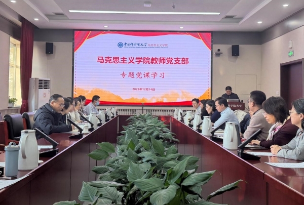 2025年12月14日上午,马克思主义学院教师党支部在玉泉路第一会议室召开全体党员大会,全体党员及教职工参会,会议由支部书记陈天嘉主持。