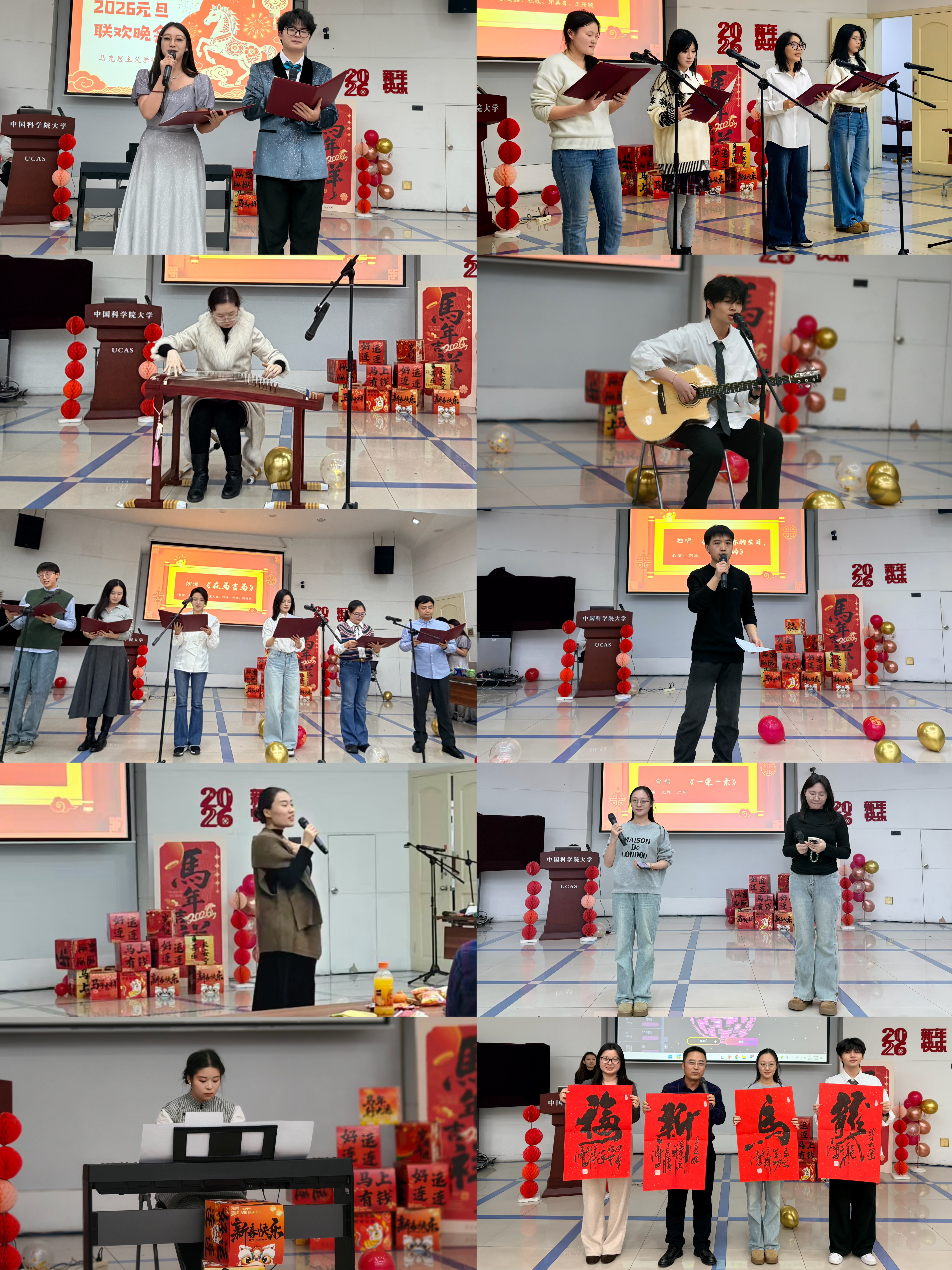 整场晚会节目形式多样、内涵丰富,生动展现了马院师生多才多艺、昂扬向上的精神风貌。解筱冰同学指尖流淌出的钢琴曲《梁祝》婉转动人,刘磊同学深情演绎的独唱《今天是你的生日,妈妈》触动心弦;陈栋老师等6人带来的朗诵《在马言马》慷慨激昂,尽显马院青年教师的情怀;黄子涵同学一曲《千千阙歌》经典重现,引发共鸣。肖遥老师的古筝独奏《古曲》清雅悠远,魏雨宁同学的《粉红色的回忆》轻快明媚,为现场增添了别样风采。马院宣讲团4人的集体朗诵《巍峨祖国壮志长歌》气势磅礴,沈烨与江珂的合唱《一荤一素》温馨和谐,贾宝余老师通过风格各异的书法《福》寄托了对师生的新春祝福。最后,全场师生共同唱响《夜空中最亮的星》,歌声嘹亮,饱含对未来的无限憧憬与坚定信念。