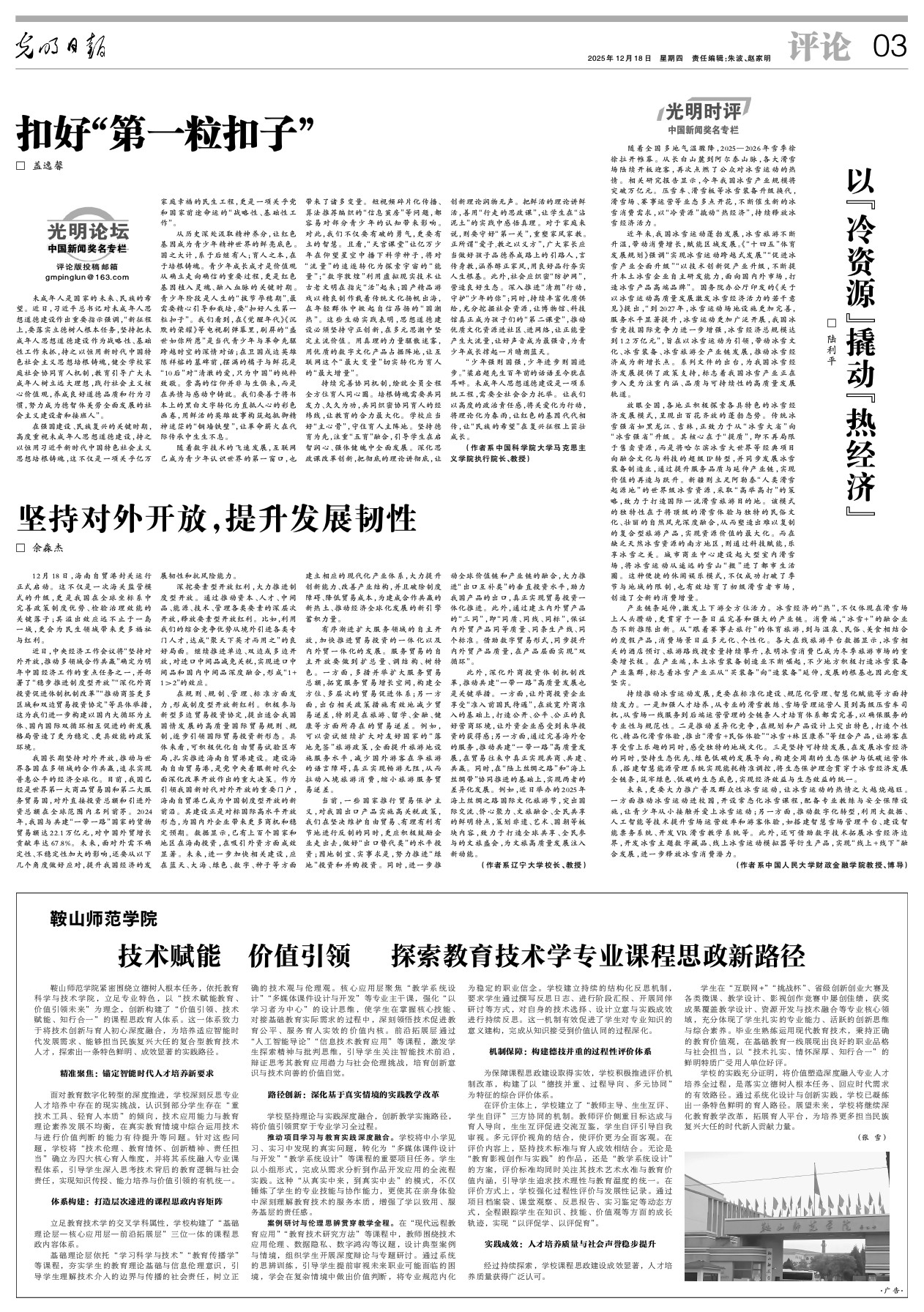 2025年12月18日,《光明日报》刊发国科大马克思主义学院执行院长盖逸馨教授理论文章《扣好“第一粒扣子”》。文章深入学习领悟习近平总书记关于未成年人思想道德建设的重要指示精神,强调持之以恒用习近平新时代中国特色社会主义思想铸魂育人。文章指出,青少年阶段是人生的“拔节孕穗期”,要引导他们“扣好人生第一粒扣子”,让红色基因成为精神世界的鲜亮底色。同时,面对互联网带来的变量,不仅要有破的勇气,更要有立的智慧,要让“最大变量”转化为育人“最大增量”。文章提出,要健全协同育人机制。学校要当好“主心骨”,家庭要守好“第一关”,社会要织密“防护网”,绘就全员全程全方位育人同心圆。未成年人思想道德建设是一项系统工程,需要全社会合力托举。让我们以高度的政治责任感,将关爱化为行动,将理论化为春雨,让“民族的希望”在复兴征程上茁壮成长。